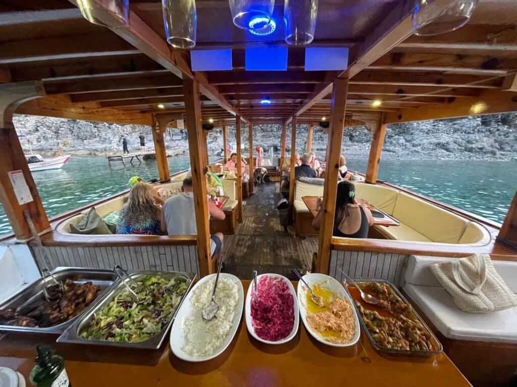 Bu rota, hem yüzme molaları hem de keşif hissi isteyenler için oldukça doludur. Soğuk Su Koyu serinlemek isteyenlerin favori duraklarından biridir. Deve Plajı ise doğal güzelliği ve sakin atmosferiyle dinlenmek için keyifli bir ortam sunar. Rotanın en dikkat çekici noktalarından biri St. Nicholas Adasıdır; adada hem tarihi kalıntıları görebilir hem de panoramik manzara eşliğinde yüzme ve dinlenme fırsatı yakalayabilirsiniz. Günün finaline doğru uğranan Akvaryum Koyu ise canlı deniz hayatını gözlemlemek isteyen misafirler için öne çıkan, berraklığıyla ünlü bir yüzme noktasıdır.