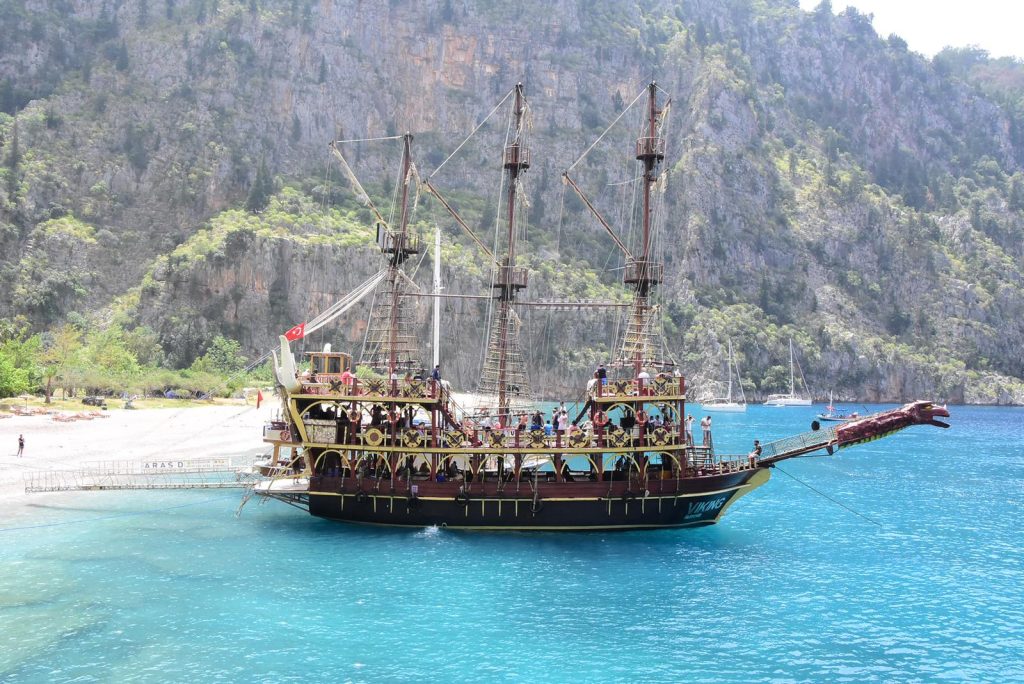 Fethiye Ölüdeniz Kelebekler Vadisi Korsan Tekne Turu Viking, tatilini denizde geçirmek isteyen misafirler için Fethiye’nin en keyifli günlük aktivitelerinden biridir. Ölüdeniz Plajı’ndan hareket eden konforlu teknede kaptan eşliğinde ilerlerken, bölgenin ünlü koylarında ve plajlarında yüzme molaları vermektedir. Gün boyunca turkuaz suların tadını çıkarabilir, Ölüdeniz’in “maviyle yeşilin” buluştuğu manzaralarını denizden izleyerek bambaşka bir açıdan keşfedebilirsiniz.
